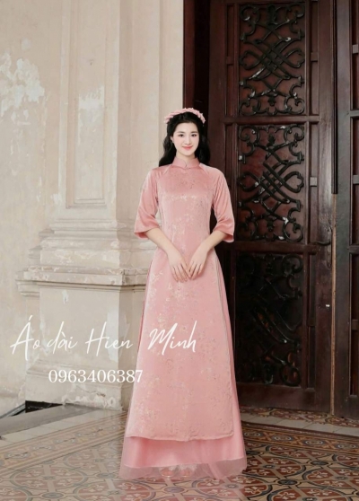 Áo dài Gấm cách tân màu hồng phối chân váy
